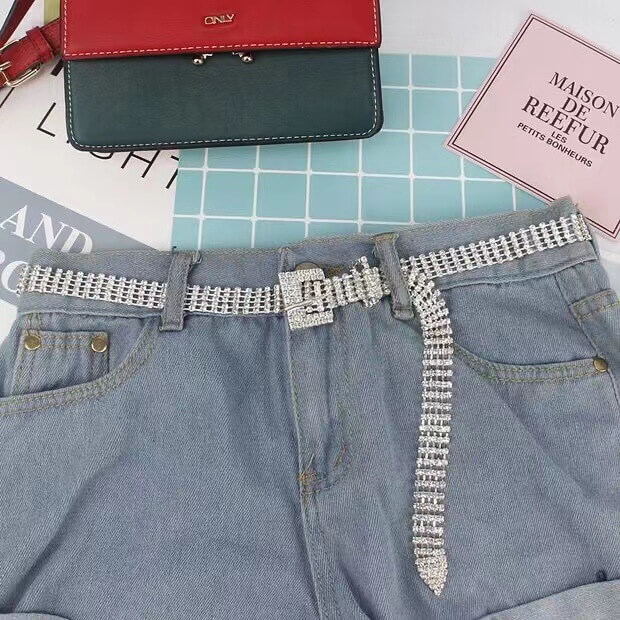 Flash Crystal Waist Belt Buckle Material: alloy Belt Material: Metal Wide: 2 cm Size: 37 Inch
