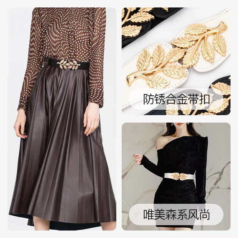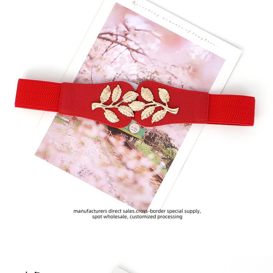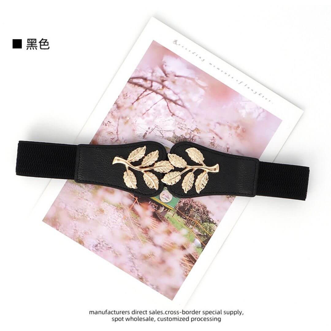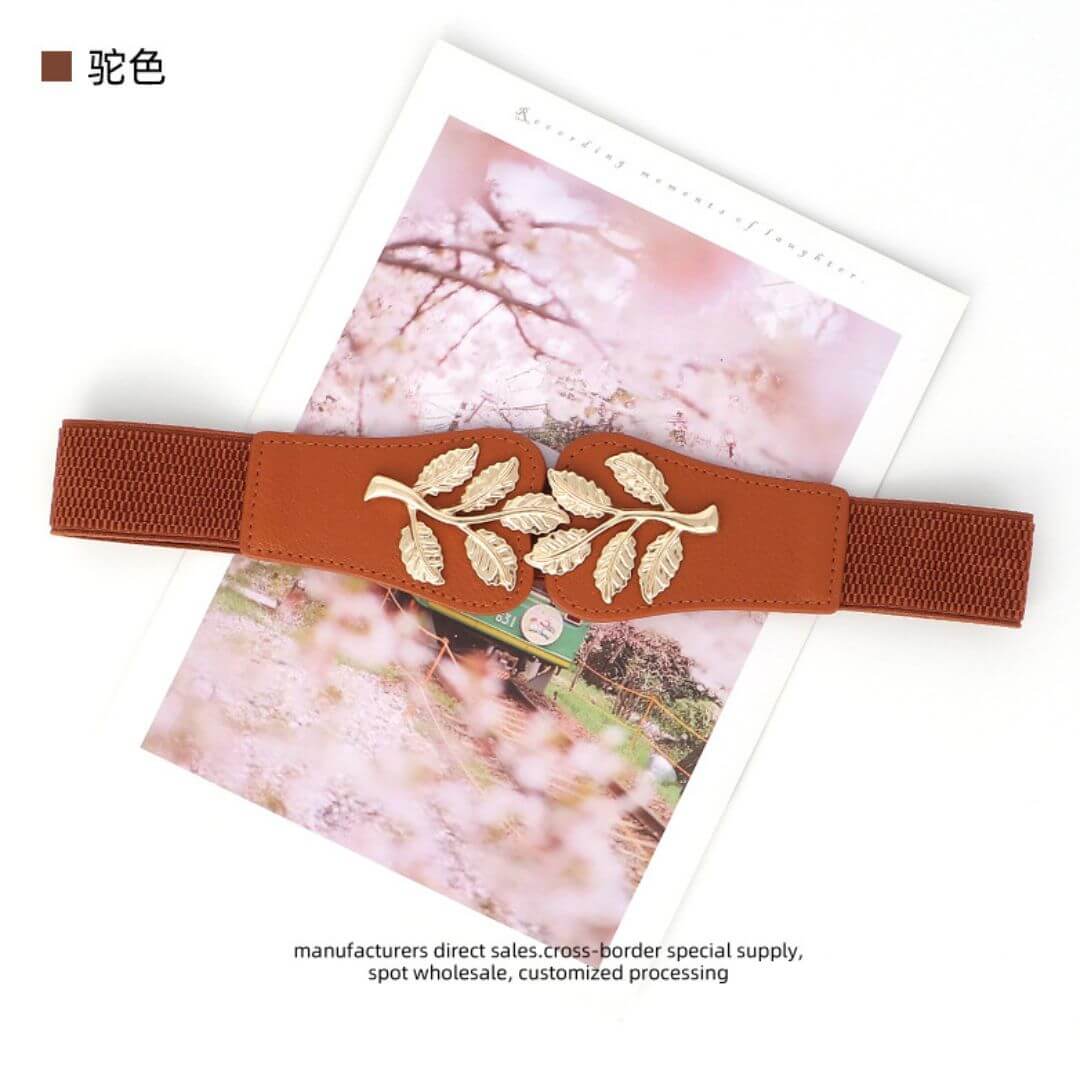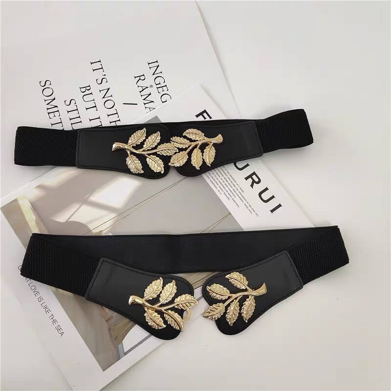 Leaf Gorgeous Belt Buckle Material: Metal Belt Material: Elastic + Leather Wide: 1.5 In Size: Free (28-40 in)