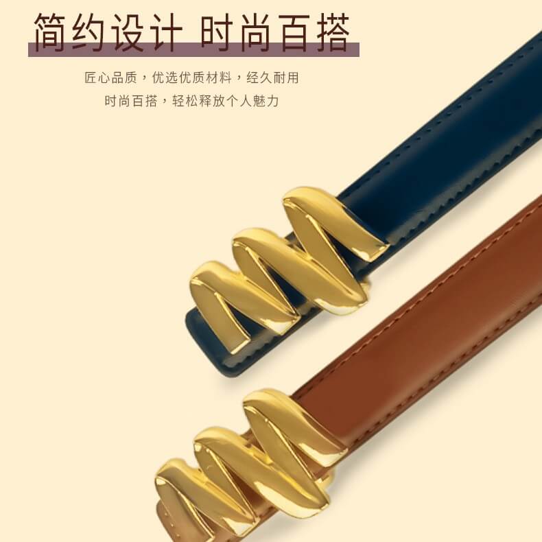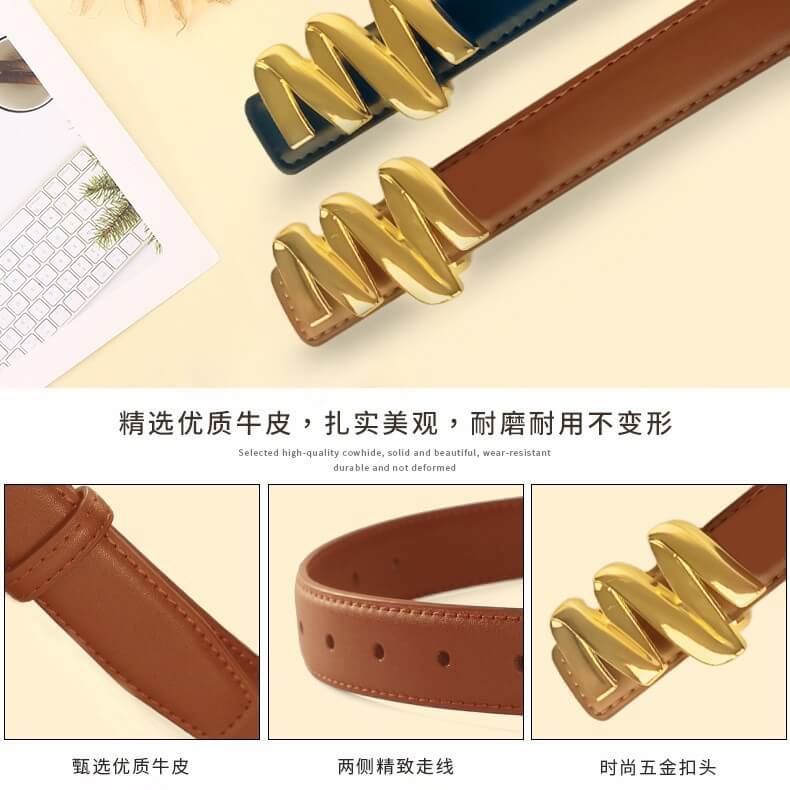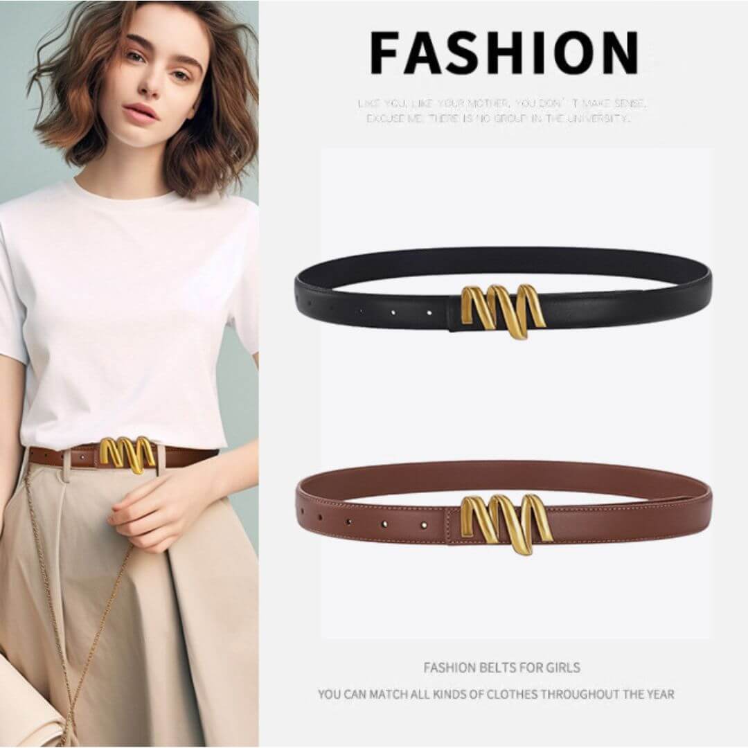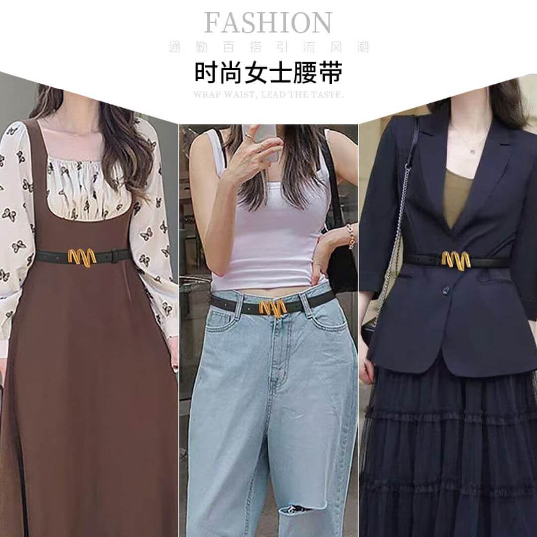 M-shaped women belt Material: PU leather Total Length :43.5 inch Hole Length: 30.5-39.5 inch Extra hole addedable Width: 1 inch