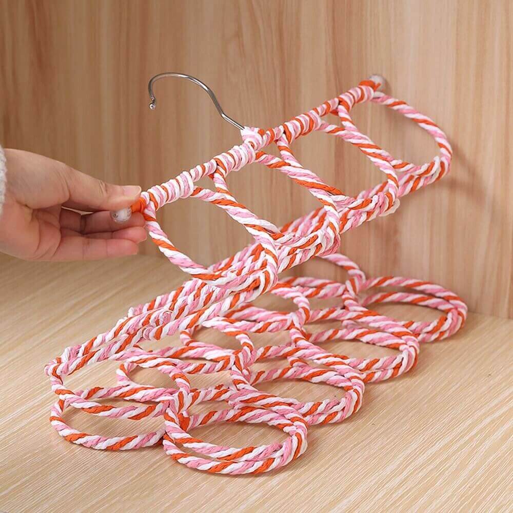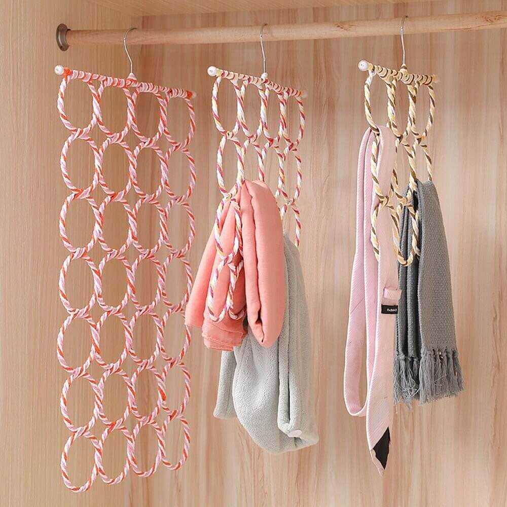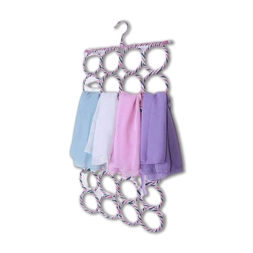 Unique design hijab hanger 28 holes hard rings Materials: Soft fabric Size: length 65 cm wide: 38 cm Can be use for hijab tie and dupatta Color: Mix Color